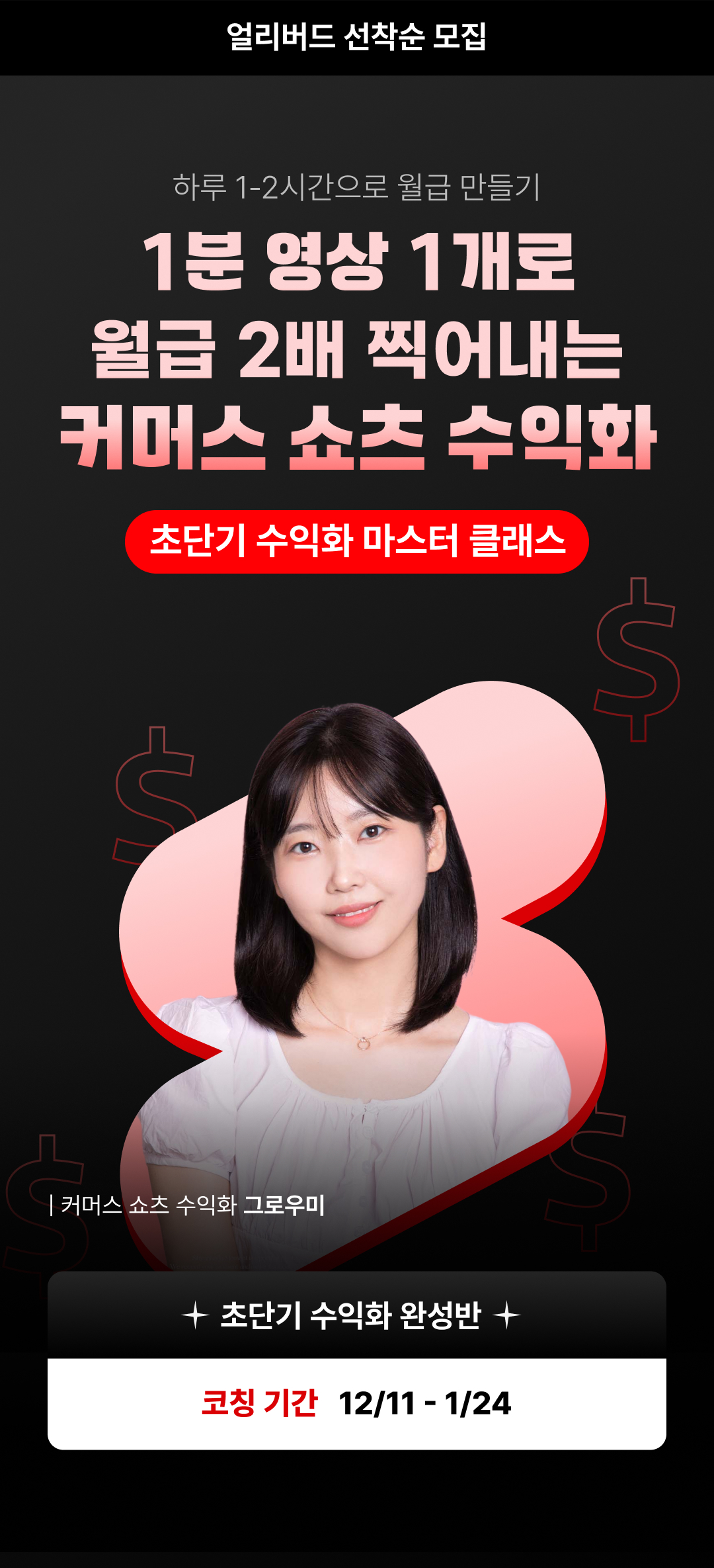 [얼리버드] 1분 영상 1개로 대기업 월급! 커머스 쇼츠 수익화 2기