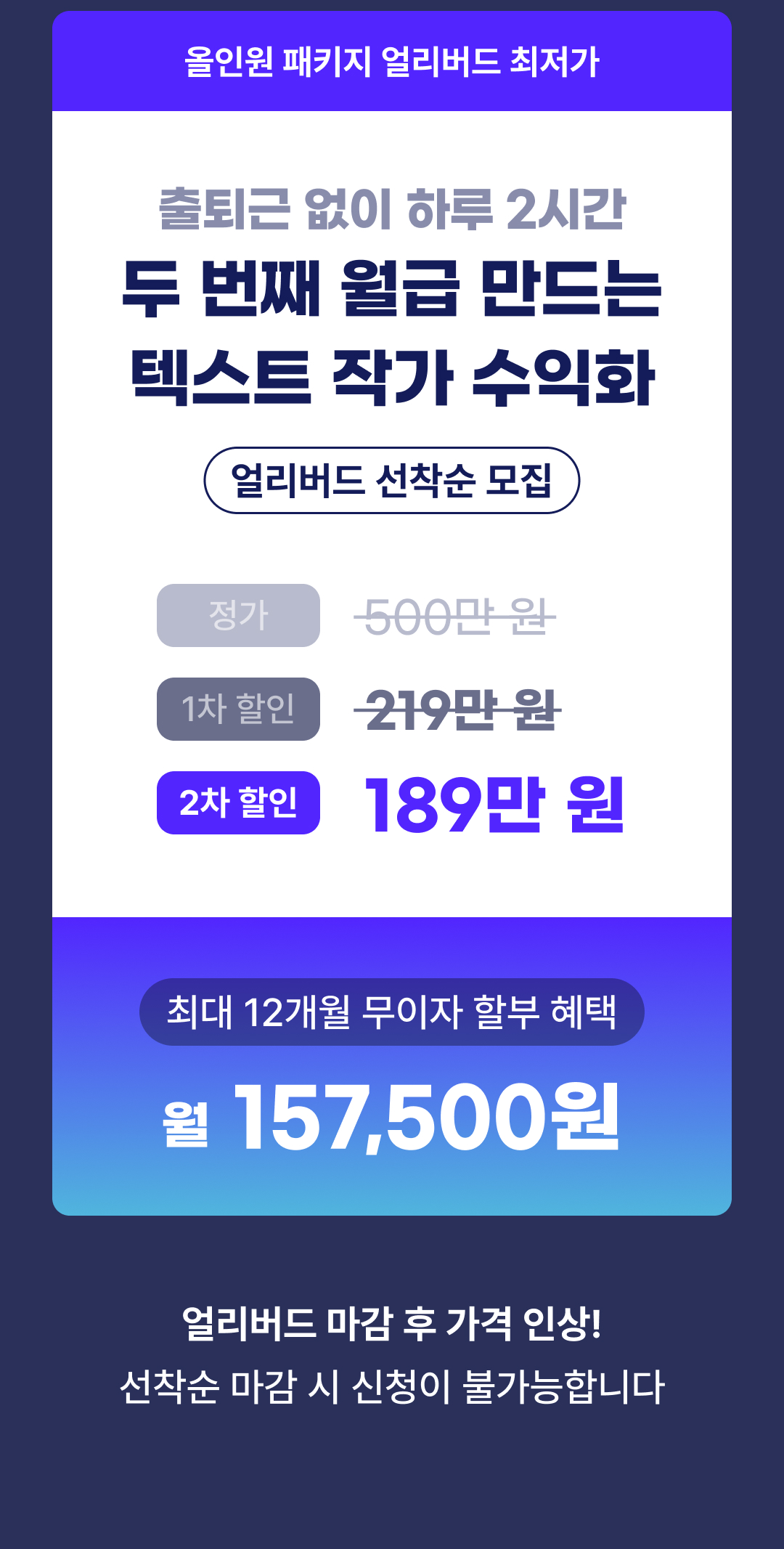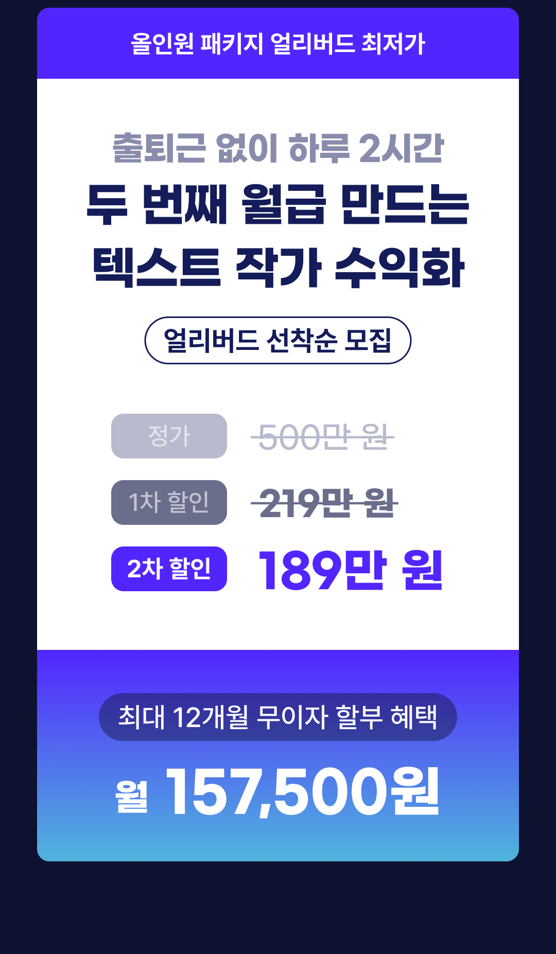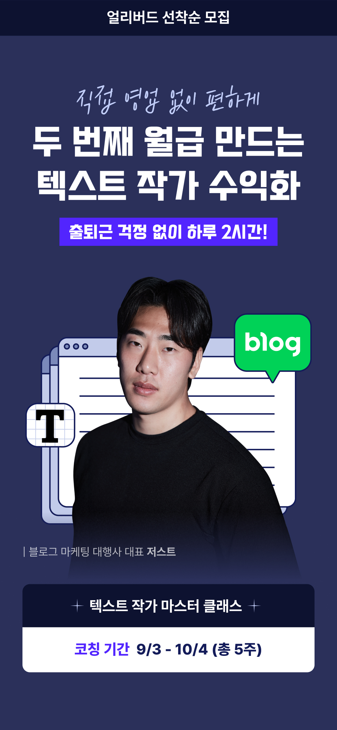 [얼리버드] 직접 영업 없이 두 번째 월급 만드는 텍스트 작가 수익화