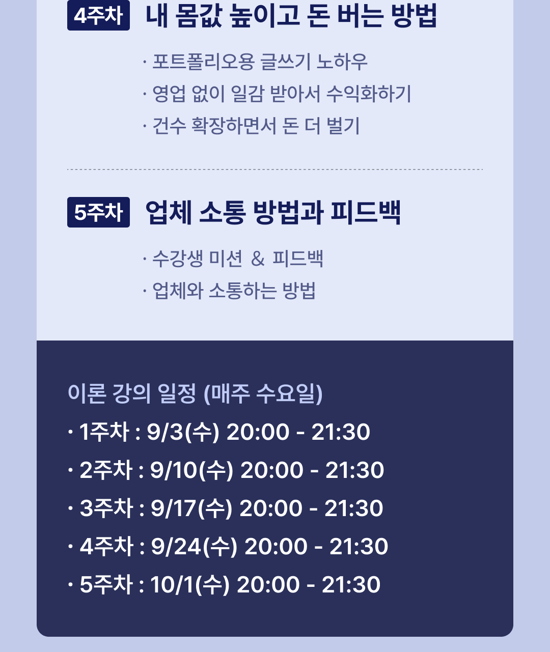 강의 결제 완료 후 수강은 실시간 줌 미팅과 녹화본을 통해 제공됩니다.