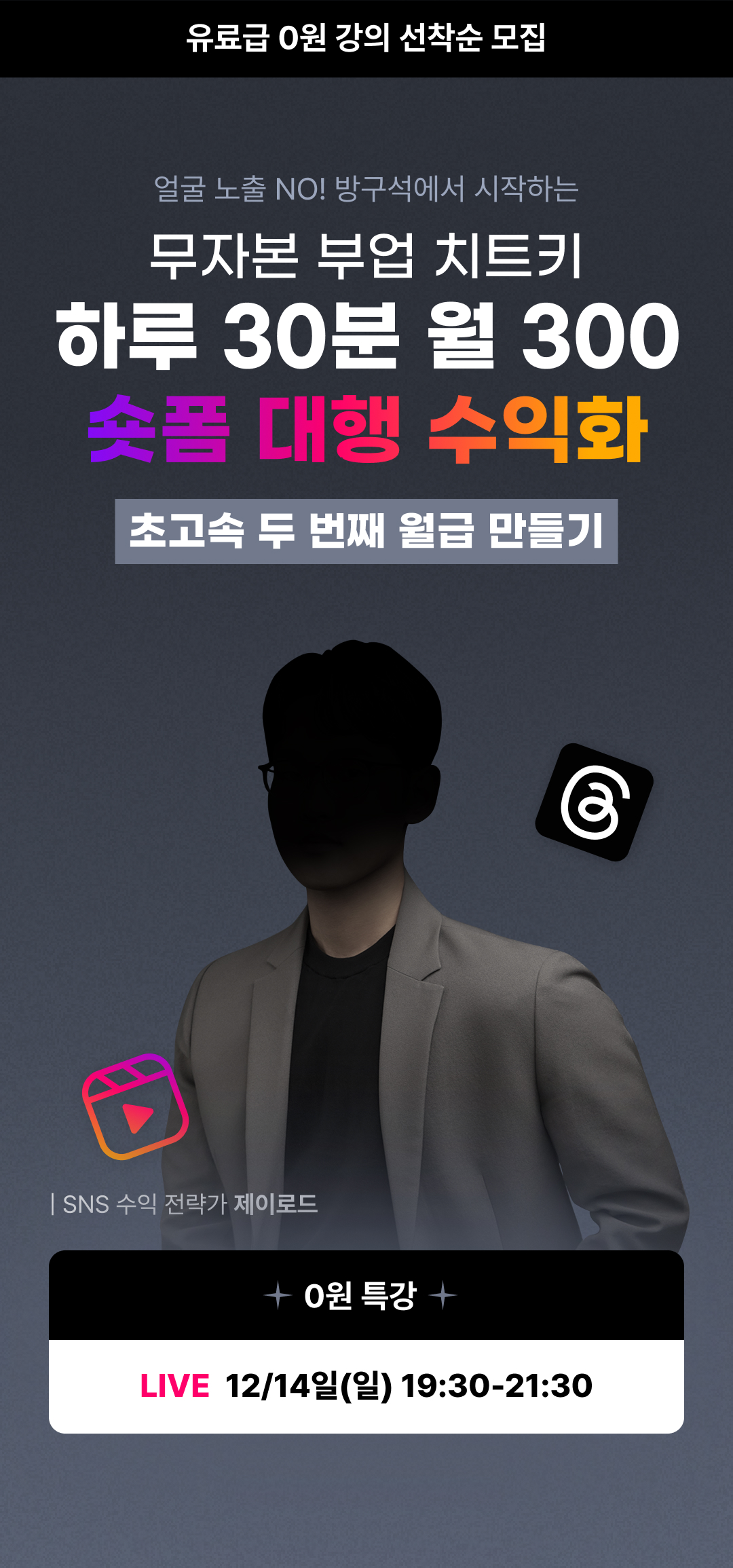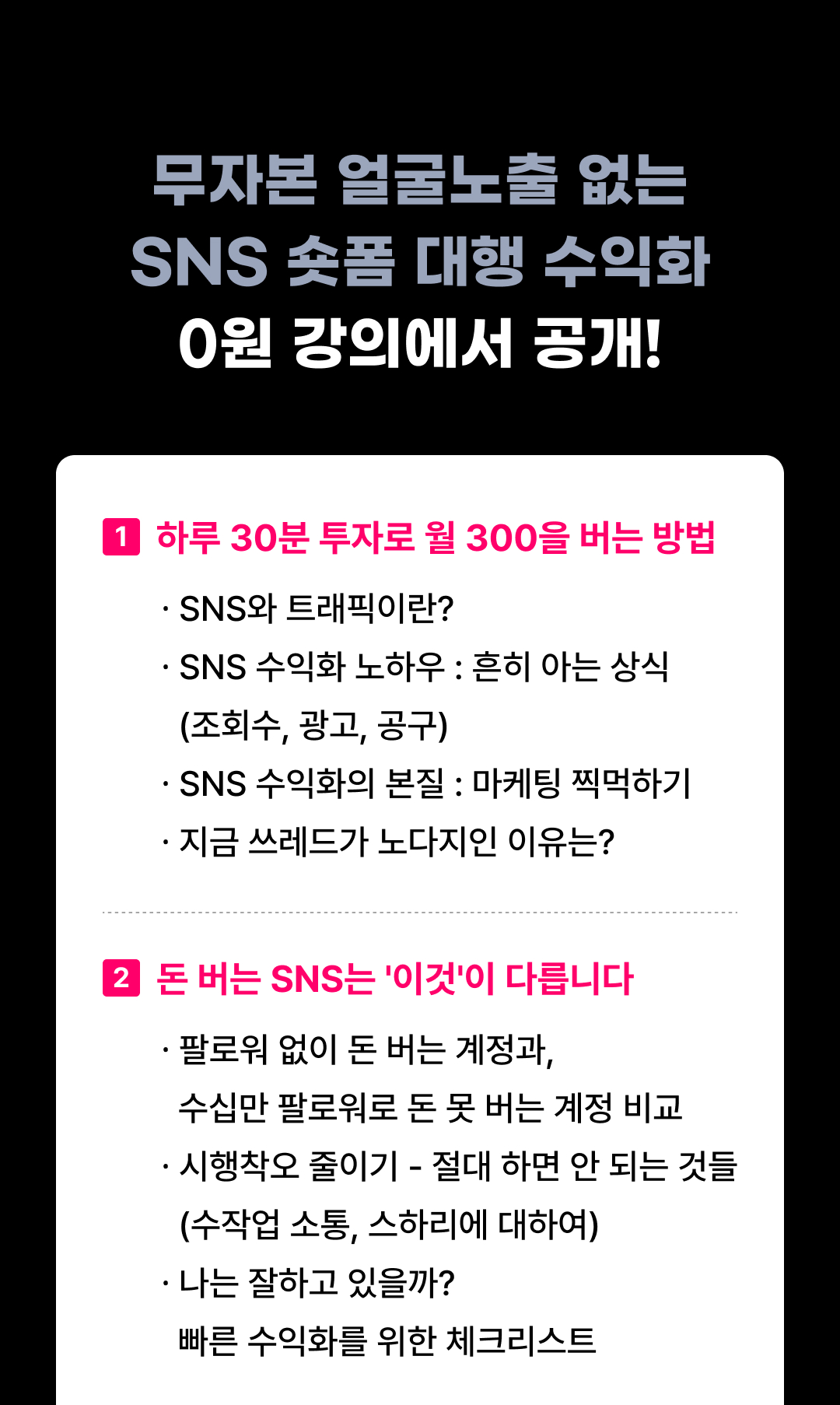 [0원 강의] 하루 30분 무자본으로 월 300 만드는 SNS 숏폼 대행
