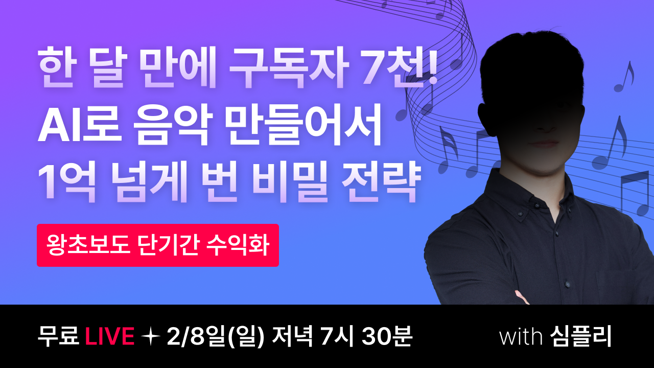 [0원 강의] 한 달 구독자 7천! AI로 음악 만들어서 1억 넘게 번 비밀 전략