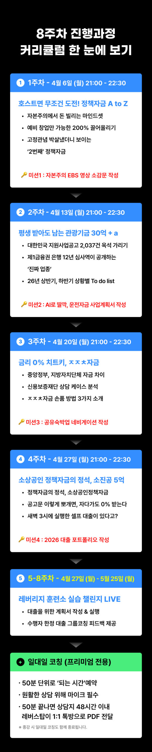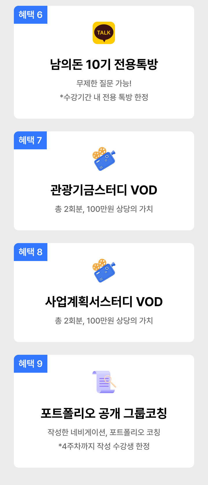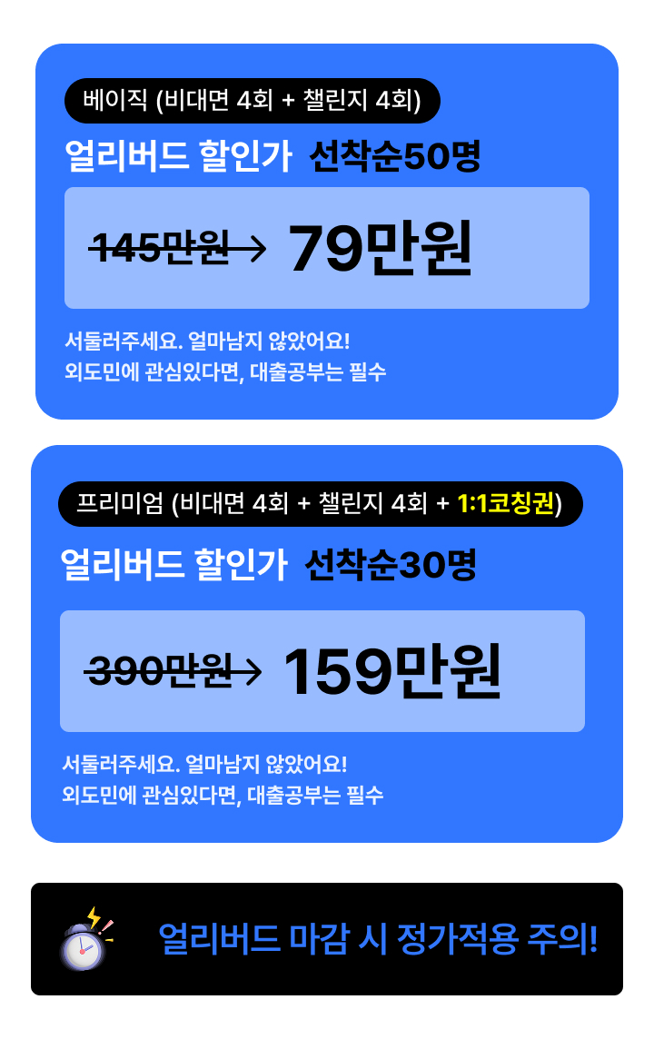 • 다시보기 및 혜택: 정규 강의 종료 후 제공되는 다시보기(+30일) 및 단톡방 유지는 수강 혜택이며, 환불 산정 기간에 포함되지 않습니다. (정규 기간 종료 후 환불 불가)