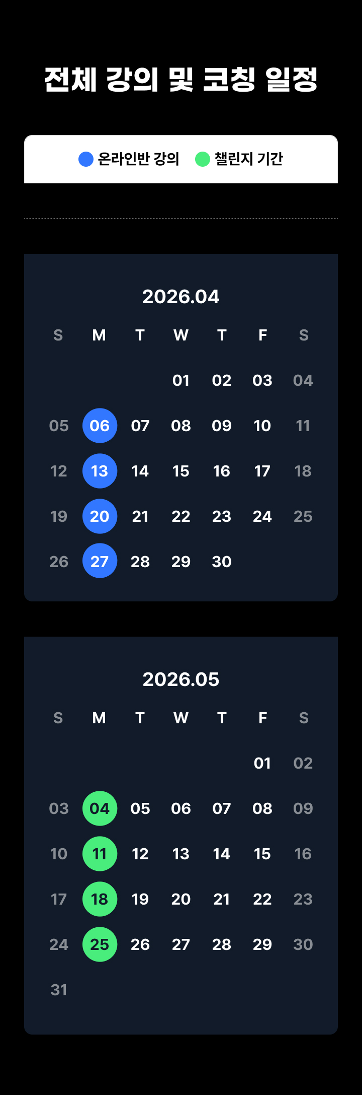 • 회원의 실제 접속/시청 여부와 관계없이 정규 강의 경과 날짜를 기준으로 합니다.